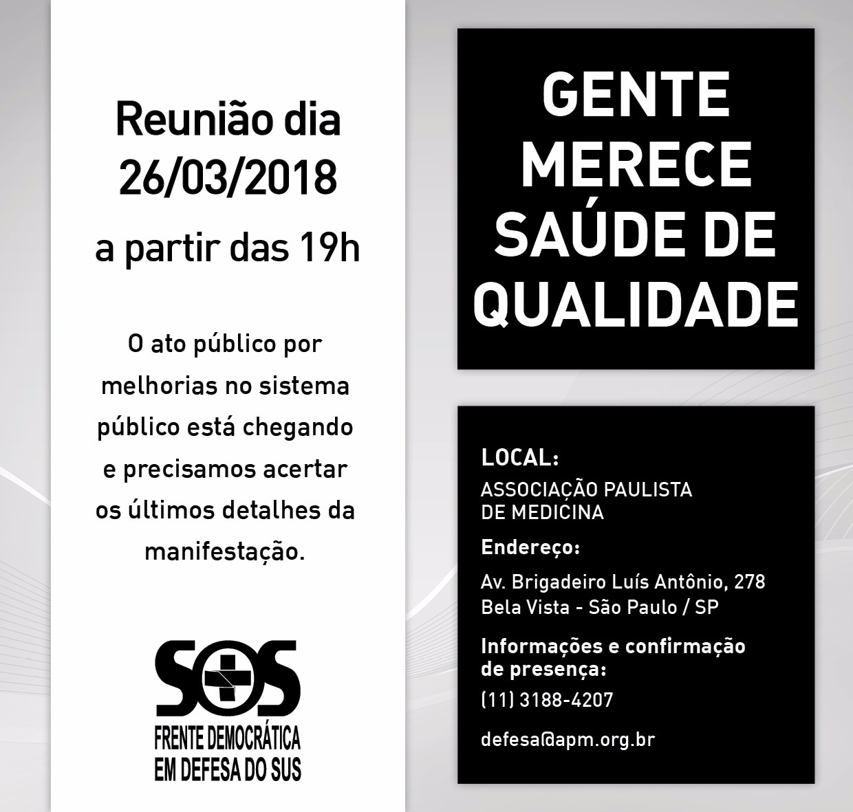 Data: 26/03/2018 Horário: 19h00 Local: Sede da APM – Av. Brigadeiro Luís Antônio, 278
